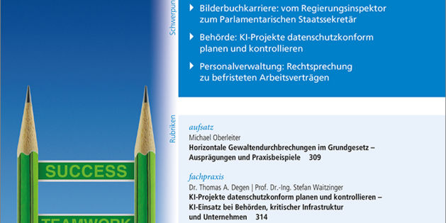 Diese hochaktuelle Praxisthematik der künstlichen Intelligenz (KI) mit Grundlagen, Analyse und Framework für Projektsteuerung und Risikomatrix wird von Dr. Thomas A. Degen und Prof. Dr.-Ing. Stefan Waitzinger behandelt. In der Fachzeitschrift apf (Zeitschrift für die staatliche und kommunale Verwaltung), 11-12/2024, 322 ff. stellen Degen/Waitzinger im ersten Teil des Beitrags das Phänomen KI und den Regulierungsrahmen der KI-Verordnung heraus.
